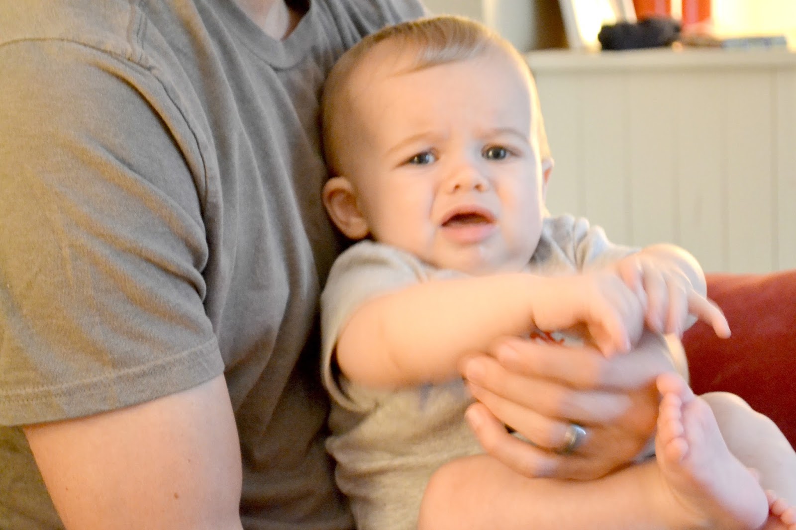 8. We have a tooth, people! the above picture was taken the night before it came through, so you can see his dissatisfaction. But, truly he wasn't even that fussy. One down, how many more to go? He has about three more that are coming any day!